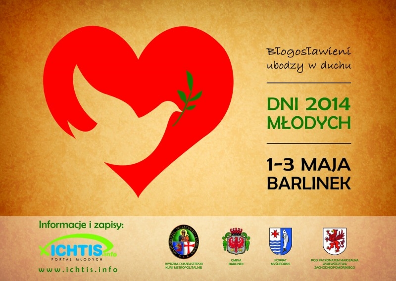 Młodzież szkół gimnazjalnych i średniach z naszej parafii, zapchęcamy do wzięcia udziału w wyjeździe na Dni Młodych, które organizowane są w dniach 1-3 maja br., w Barlinku. Wspólna modlitwa, koncerty, warsztaty tematyczne, czas wolny, radość, uśmiech, młodość Kościoła - tego wszystkiego można doświadczyć po raz kolejny na wielkim spotkaniu młodych.