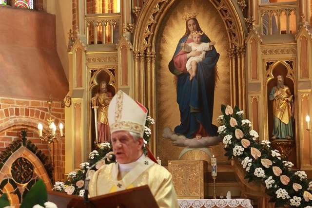 Już po raz dziesiąty wierni z całej archidiecezji szczecińsko-kamieńskiej uczestniczyli w uroczystościach rocznicowych koronacji cudownego obrazu z Sanktuarium Maryjnego w Trzebiatowie. Była to również okazja do świętowania 150 – lecia powstania w Düsseldorfie obrazu Matki Bożej Łaskawej oraz 20 – lecia ustanowienia w trzebiatowskiej Farze Sanktuarium Maryjnego. – Przyszłaś (Maryjo) i na tą ziemię w wielu figurach i obrazach (…) Weszłaś na tę ziemię pośrodku dominacji protestantyzmu tutaj w Trzebiatowie. Weszłaś wezwana przez serca Twoich dzieci, naszych braci protestantów. Ty na nich patrzysz ciągle, że to są Twoje dzieci. Przyszłaś namalowana przez artystę, przyszłaś i zostałaś rozpoznana i przyjęta jako Matka, jako Pani Pomorza (…) Ciągle tu o Tobie pamiętali – powiedział w czasie homilii ksiądz arcybiskup Andrzej Dzięga, metropolita szczecińsko – kamieński. W czasie uroczystości ksiądz arcybiskup poświęcił również witraż przedstawiający wizerunek Jezusa Miłosiernego, siostry Faustyny Kowalskiej i bł. Księdza Michała Sopoćko, który jest darem wiernych z okazji przypadającego roku Miłosierdzia. Metropolita nadał także imię św. Jadwigi, dzwonowi z 1399 r., który jest jednym z najstarszych w Polsce. Wizerunek Dzieciątka Jezus oraz Matki Bożej ukoronowany został w 2006r. Uroczystości koronacyjne odbyły się na Stadionie Miejskim w Trzebiatowie. Korony biskupie – dar mieszkańców Trzebiatowa nałożył ówczesny Nuncjusz Apostolski Abp Józef Kowalczyk, który słowami „Wierzę, że tą dokonaną koronacją raduje się z nieba Sługa Boży Jan Paweł II” podsumował uroczystości koronacyjne obrazu Macierzyństwa NMP w Trzebiatowie. Po koronacji Arcybiskup Szczecińsko – Kamieński Zygmunt Kamiński zawierzył macierzyńskiej opiece Maryi całą diecezje, a szczególnie tych, którzy są bez pracy, którzy znajdują się w obliczu bezrobocia, wszystkich, którzy przeżywają uczucie lęku przed przyszłością spowodowana brakiem mieszkania, bezradnością i opuszczeniem, a także wszystkich chorych i cierpiących.