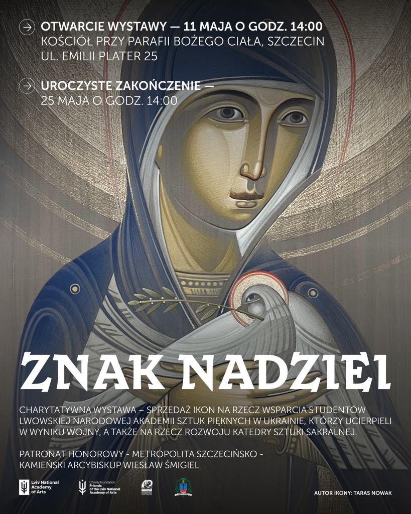 Blisko 30 współczesnych ikon zostanie zaprezentowanych na wystawie ikon wykonanych przez artystów Akademii Sztuk Pęknych we Lwowie. Zostanie otwarta w niedzielę 11 maja o 14.00 w kościele Bożego Ciała przy ulicy Emilii Plater 25 w Szczecinie.